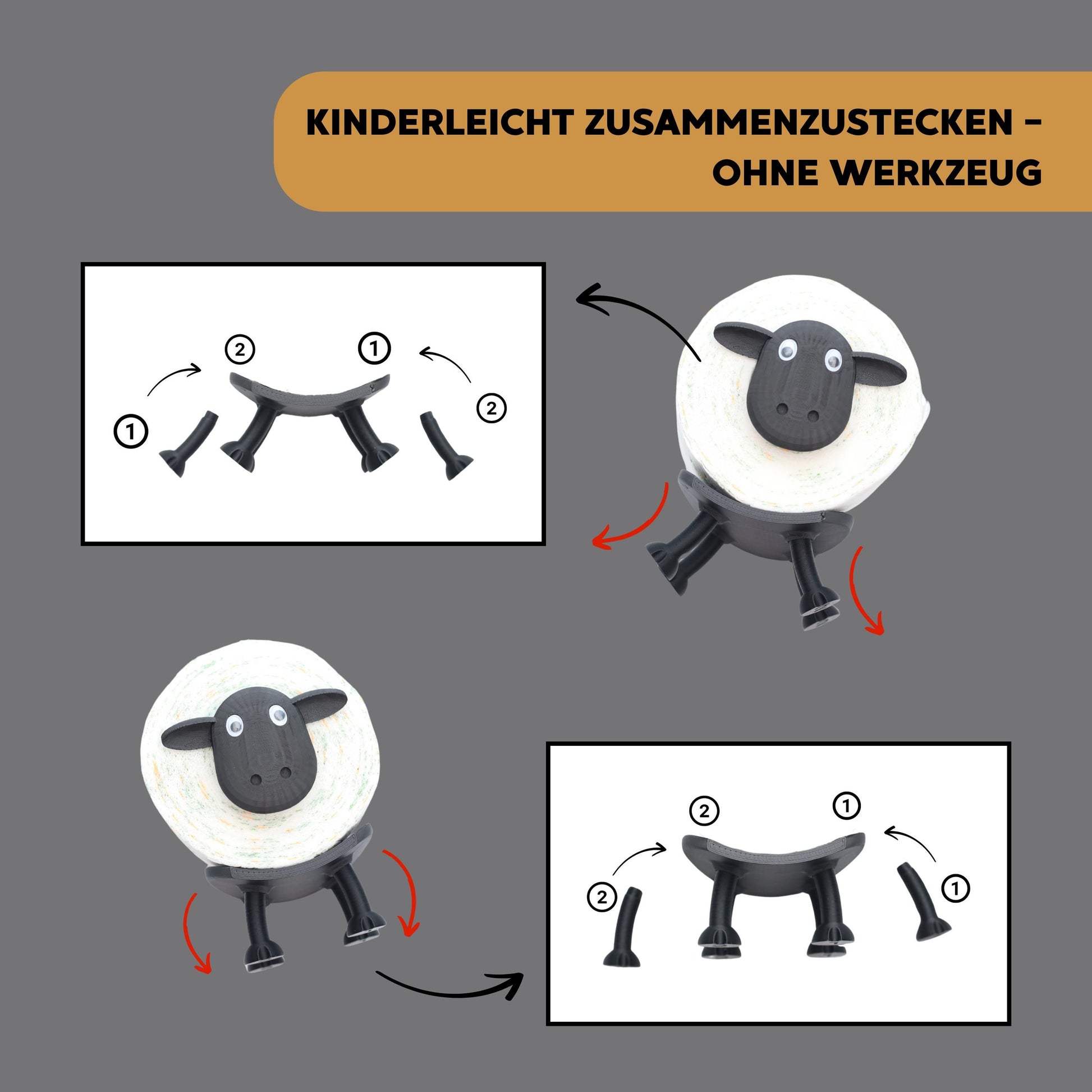 • Gestapelt: Bei den oberen Schafen die Beinchen nach außen stecken (X-Beinchen)